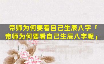 帝 🐡 师看 🌲 自己生辰八 💐 字的原因: