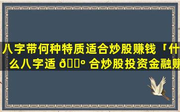 不 🐺 宜炒股的八字 🕊 特征: