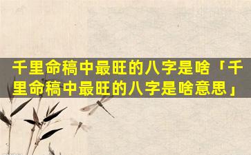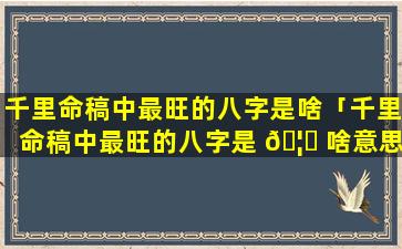 “千里命稿中最旺的八字”是指在传统八字命理学中千里命稿中,认为最吉 🦅 祥最 🌵 为、富贵的一种八字组合。