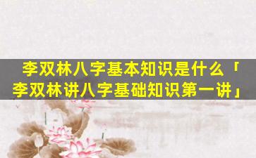 李双林讲 🍁 八字 🐅 基础知识第一讲 🐼