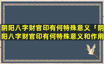 因此,阴,阳八字财官印在八字命理中具有重 🕷 要的意义和作用能够影响个人运势、体、现,性格预示人生吉凶并作 🦍 为取用神来调理命局。