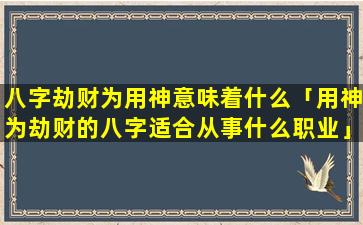 八 🐬 字劫财为用神 🐱 的 🦁 含义: