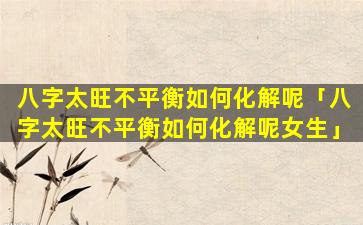 化解八字太旺不平衡 🐧 的女生方 🐘 法