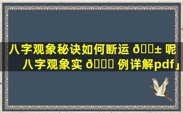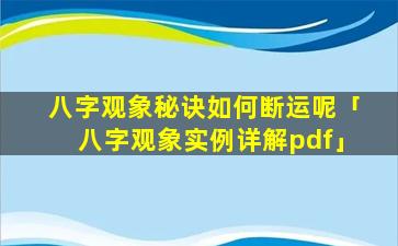注意:八字观象秘诀断运 🦁 是一项复杂的技法,需,要综合考虑八字中的各种因素并结合个人的实际情况进行分析。建,议。找 🐬 专业命理师进行解读切勿盲目套用