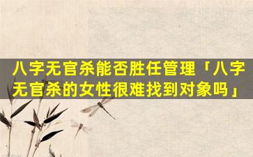 根据命理学来说,八字无官杀的女性是否难以 🌷 找到对象取决于多种 🐵 因素: