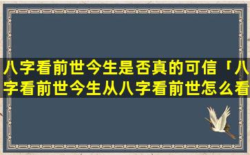 八字看 🌼 前世今 🐠 生:从八字看 🕷 前世的依据