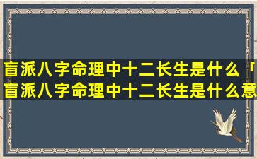 盲派八字命理中,十,二长生是指八字中干支 🦍 间的生 🐋 克制化关系用来判断一个人的命运吉凶十二长生。依次为: