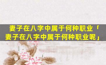 需要注意的是,以,上职业暗示仅供参考还需要根据妻子的具体八字命局、大运流 🌸 年等因素 🦢 综合判 🦆 断。