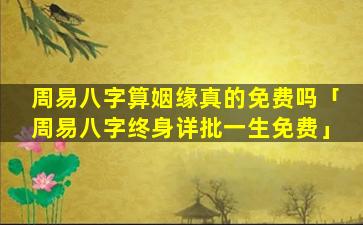 否,大多数周易八字算姻缘服务并非免费。尽,管。一些网站和从业者声称提供免费八字合婚服务但通常会有附加条件或限制 🐈