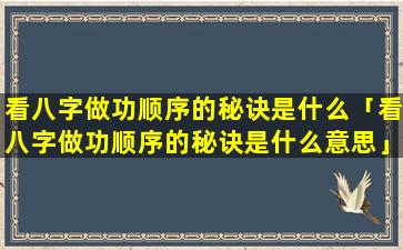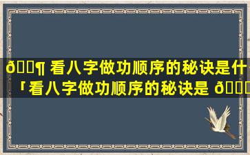 看八字做功 🕷 顺序 🌷 的秘 🌾 诀