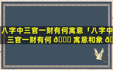 “八字中三官一财”是指八字命理中出现特定格局,代,表 🐋 着命 🐟 主官运亨通财运旺盛。