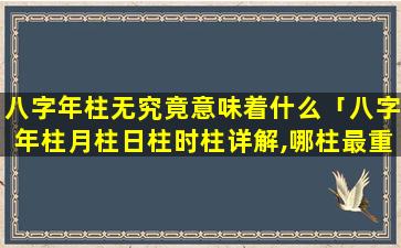 八字命理中,“年柱无究竟”是指年柱地支与日支 🕷 相 🦅 冲。