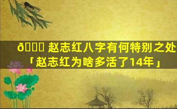 对于“赵志 🕊 红为啥多活了14年”的说法没有科学依据或事实支持。