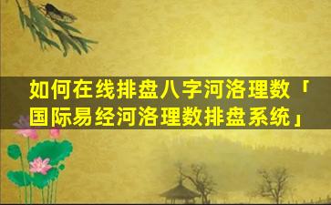 在 🦍 线排盘 八 字河洛理数