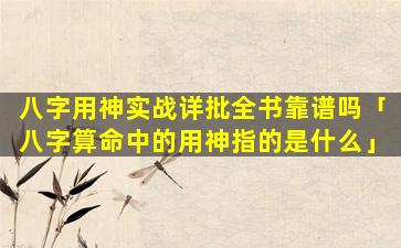 《八字 💮 用神实战详批全书》是一本介绍八字命理学用神分析和命理推断的书籍。关于其是否靠谱,需要考虑以下因素: