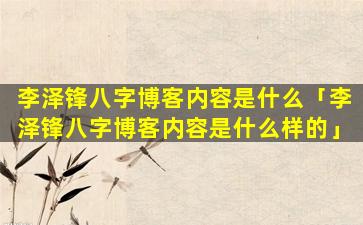 李 🦄 泽锋八字博 🐠 客 🌸 内容