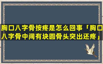 如果按压胸口八字骨疼痛,建议及时就医进行检查和诊断医。生可能会进行体格检 🐺 查、X 线,检查。或其他检查以确定疼痛的根本原因并推荐适当的治疗方法
