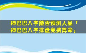 因此,神巴巴或其他八字预测网站无法准确预 🌴 测人品。