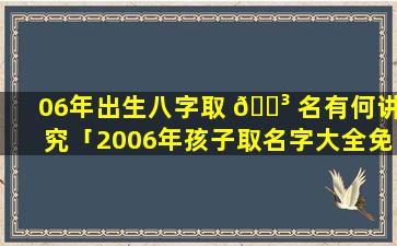 2006 年出生 🪴 的八字取名讲 🐡 究