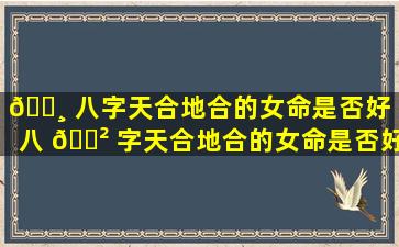 八字天合地合的女命是否好,需,要根据具体的八字命盘来判断不可 🕸 一概而论。