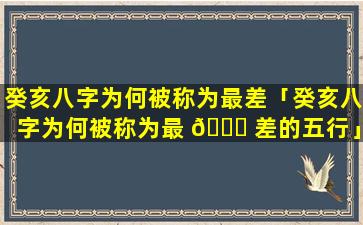 癸亥八字并 🌵 不是 🌹 最差的八字。