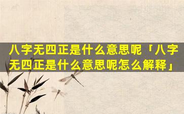 "八"字无四正是指 🌾 八字中不包含天 🐱 干地支的四正。