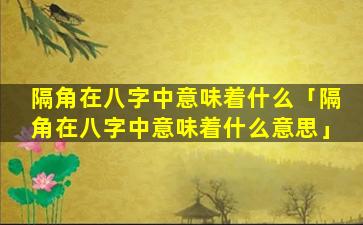隔 🕷 角 🕸 在八字中的含义 🌻