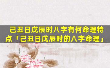 己丑日 🦟 戊辰时八 🕊 字命理特点 💐