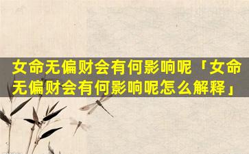 女 🌾 命 🐺 无偏 🐈 财的影响