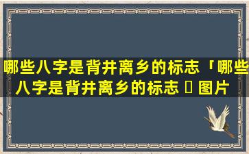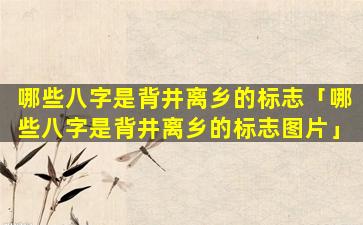 八 🐴 字格局中 🐘 具有背井离乡特征的 🐱 标志: