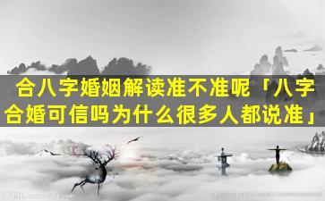 合八 🐬 字婚姻解读是否准确尚未达成共识。