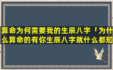 算命需要生辰八字的原因 🐛 :