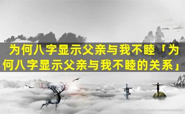 八字显示父子不睦的 🌴 原因可能有很多,要具体分析八字才能确定。