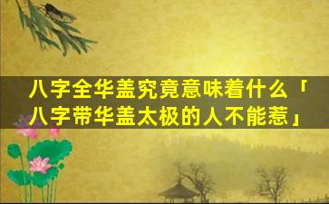 凶兆:八字中华盖星太多太 🐈 旺,或,与,其 🐺 ,他凶星,同现则主命主孤僻寡合事业受阻感情不顺晚 🐳 年坎坷。