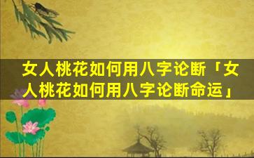综合判断结 🐠 合以上方法,综合判断桃花运势。通,常情况下日支、年支、财,星或官星 🐘 中出现桃花且旺盛者桃花运好;反,之桃花。较弱