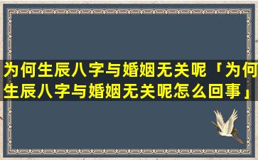 生辰八字与婚姻 🌾 无关的说 🦟 法有以下几种原因: