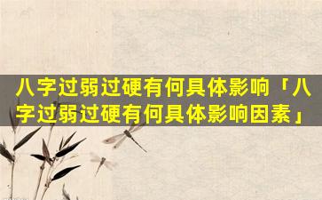 八字过弱或过硬 🐵 的具体影响与以下因素有关: