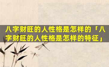 根据八字命理学,财旺的人 🌲 性格 🐒 通常具 💐 有以下特征: