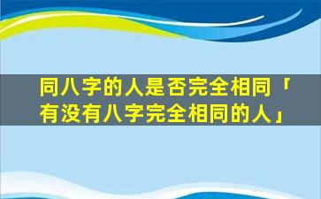 同八字 🐬 的人不一定完 🦢 全 💐 相同。