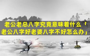 “老公老总八字”是指八 🦄 字算命学中,用于推算一个人事业财富、地位尊卑的八个干支。