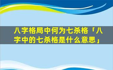 生辰 🦍 八字中的七杀格