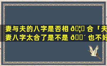 八字太合通常表示夫妻双方在性格、三观和生活习惯 🐝 等方面 🌺 高度契合。