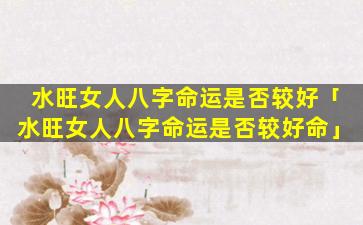 水旺女人八 🌼 字命运 🐒 是否较 🐠 好