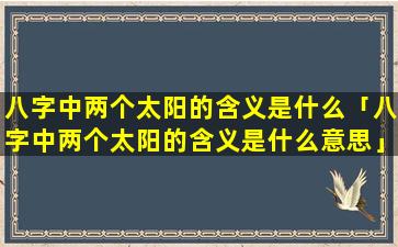 具体而言,八字 🐟 中两个太阳的 🦢 含义 💮 如下: