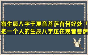“寄生辰八字于观音菩萨”一语与佛教义理相违背,并无佛教 🦟 经典或正统的说法支持观音菩 🦊 萨。是,慈悲智慧的化身以救苦救难、普,度。众生为愿与出生八字并无关联
