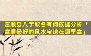 富顺县取名 🕊 还受到当地文化的影响,如 🌳 :