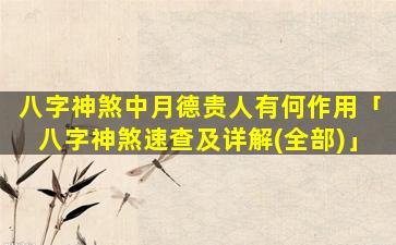 吉星月德贵人:主积德行善、逢凶化吉 🌿 ,有福 🌸 报。