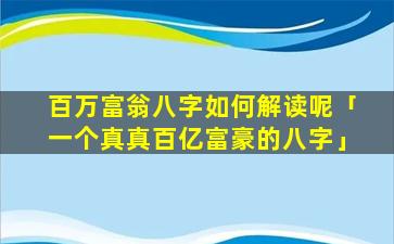 解读百万富 💐 翁八字的要 🕊 点 🦊