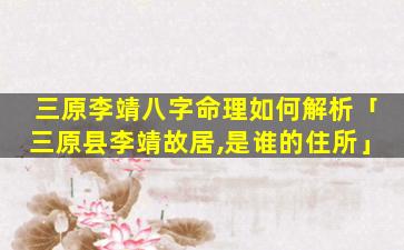 三原 🌸 李靖 🌻 八字 🍀 命理解析