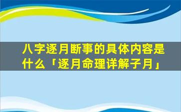 八字逐月断事是指根据八字中的天干地支,推算出某人每月运势吉凶的方 🐛 法。具体内容包括: